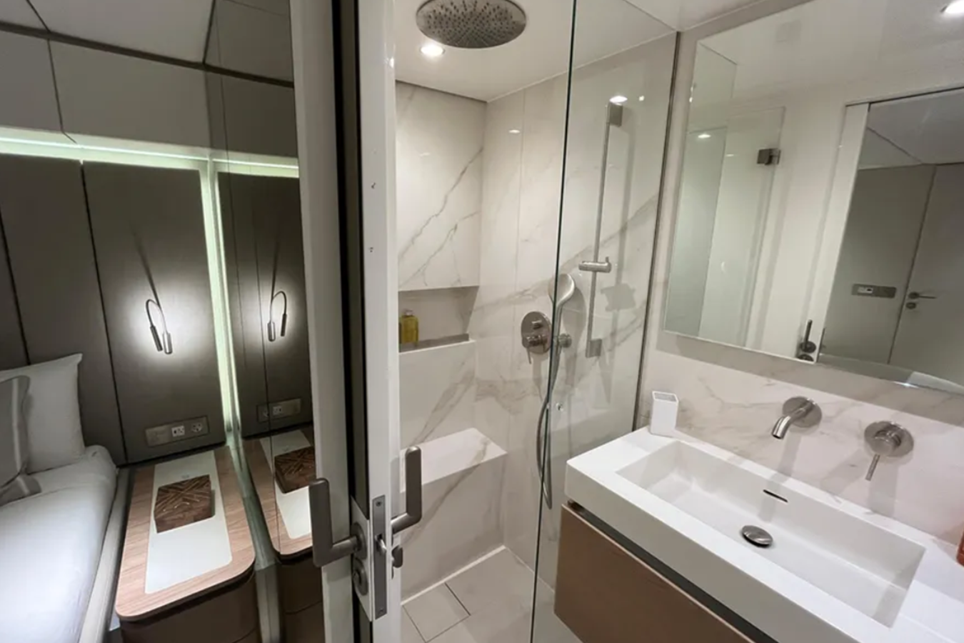 Designed for both comfort and creativity, the 70 Sunreef Power boasts generous hull volumes, providing infinite possibilities for a bespoke layout. From opulent guest cabins to private living quarters, the yacht’s interiors are crafted with the finest materials and a keen eye for detail. The crew quarters and galley, situated aft, can be accessed exclusively from the cockpit, ensuring privacy for guests and owners alike.