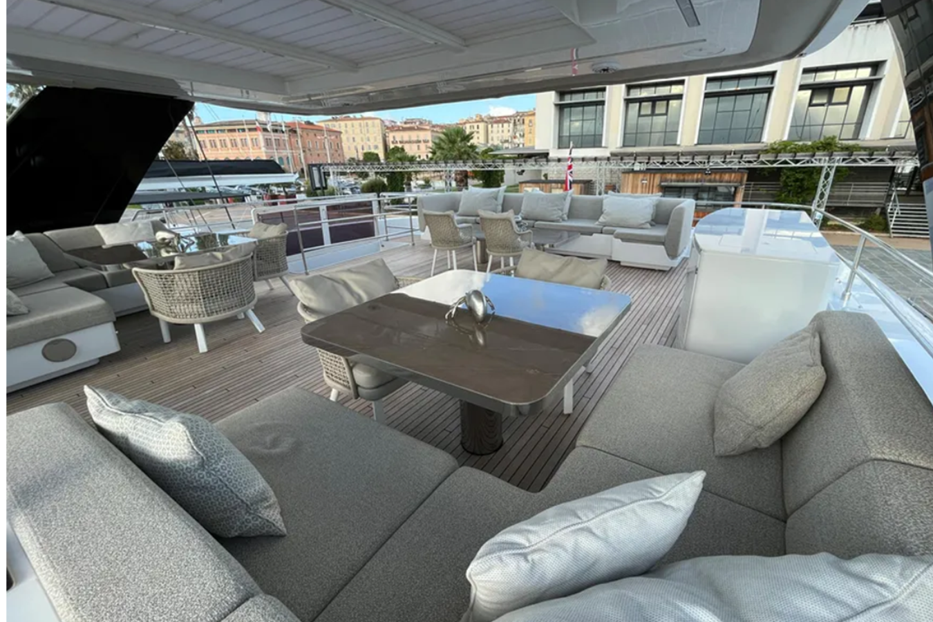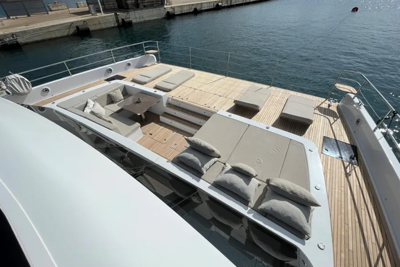 EXPANSIVE BOW TERRACE AND LUXURIOUS FLYBRIDGE