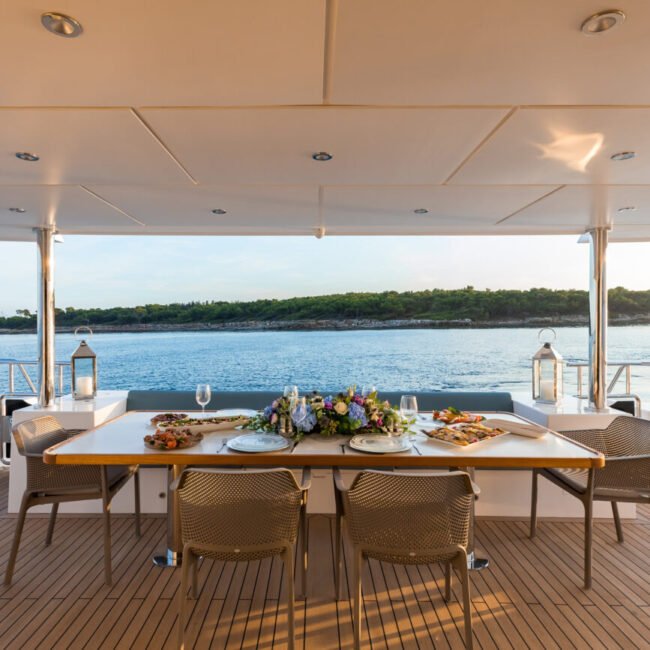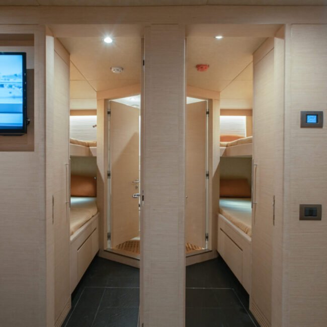 For those who seek a touch of exclusivity, the five-cabin layout places a stunning VIP suite on the upper deck. This elevated cabin serves as an adventure penthouse, providing breathtaking views and direct access to outdoor living areas — a unique feature for a yacht in this class.