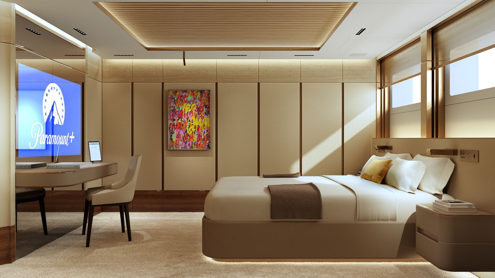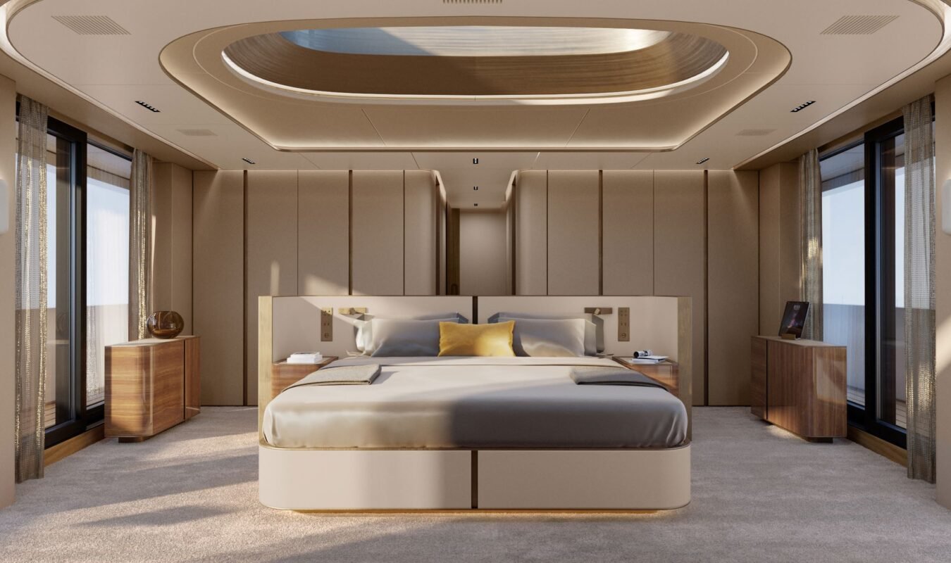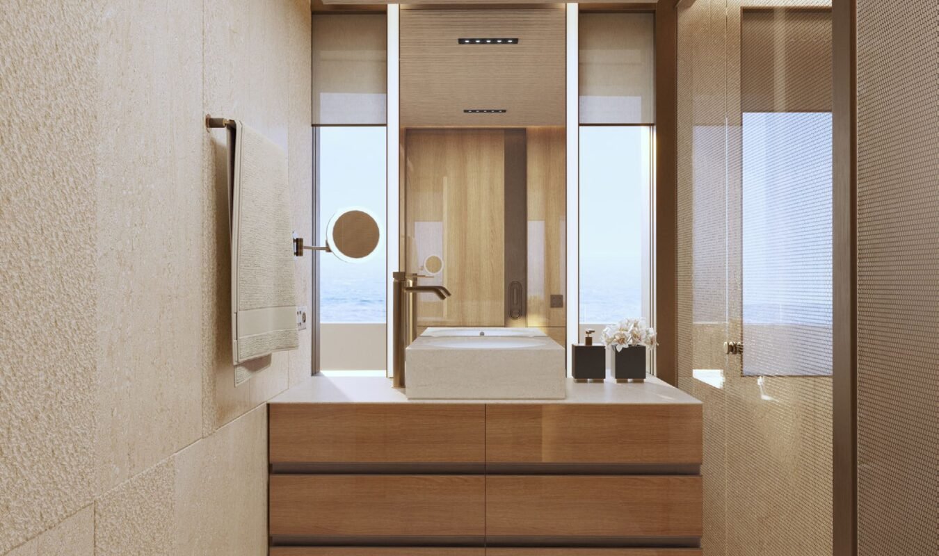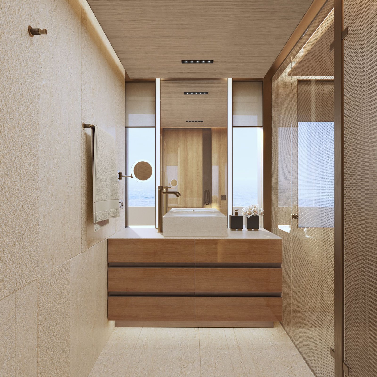 Operational excellence is at the core of PANORAMA’s design. Accommodations for a full professional crew ensure premium service, with dedicated crew routes allowing for seamless movement and discrete guest service. The crew layout includes seven bathrooms and optimally placed quarters, supporting efficiency and maintaining the yacht’s elegant guest-focused atmosphere.