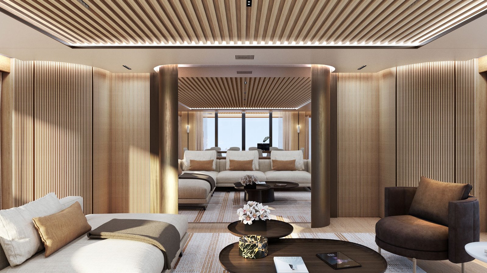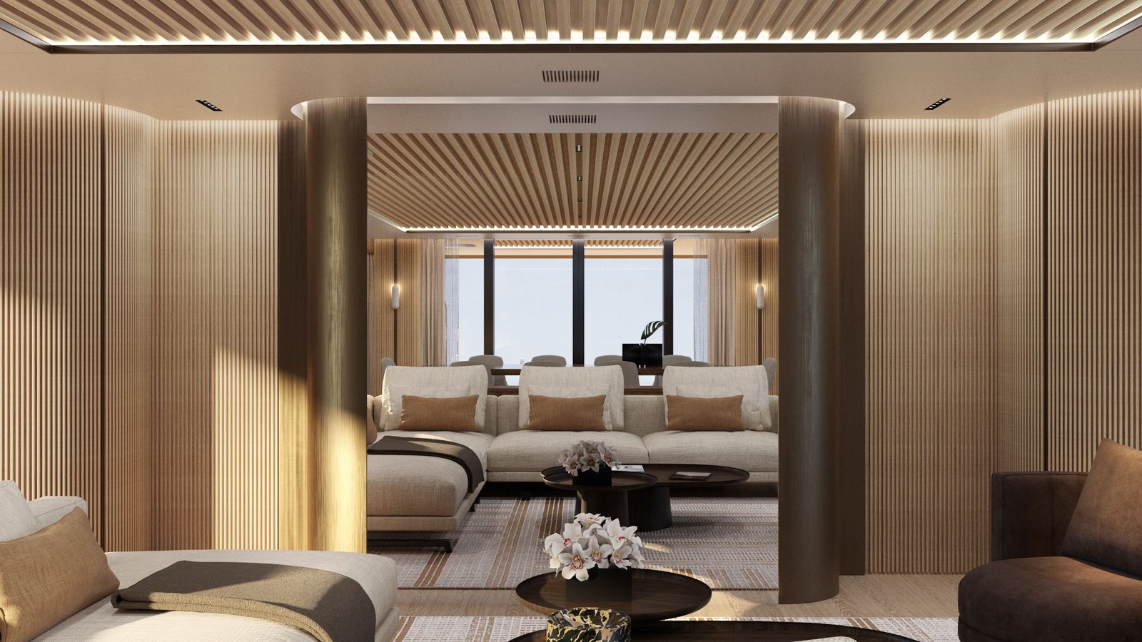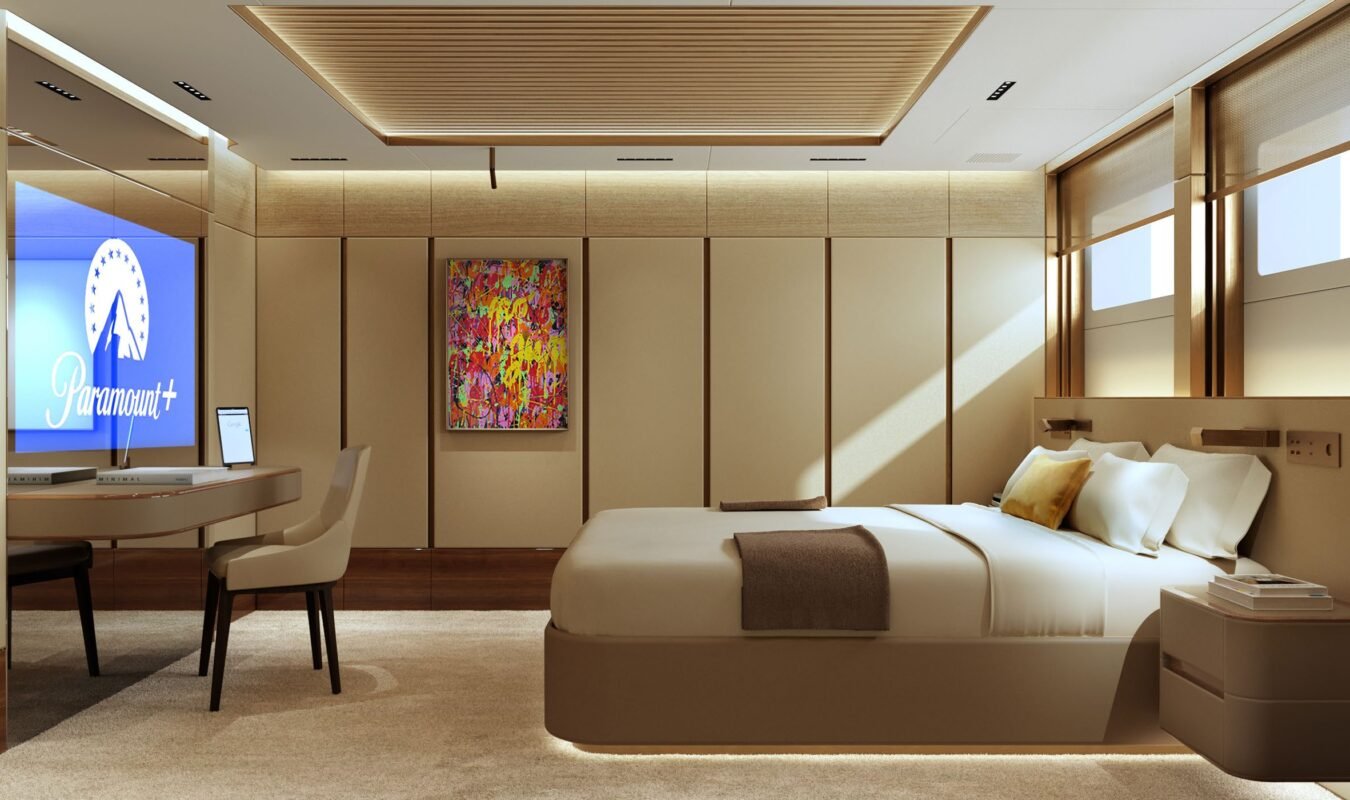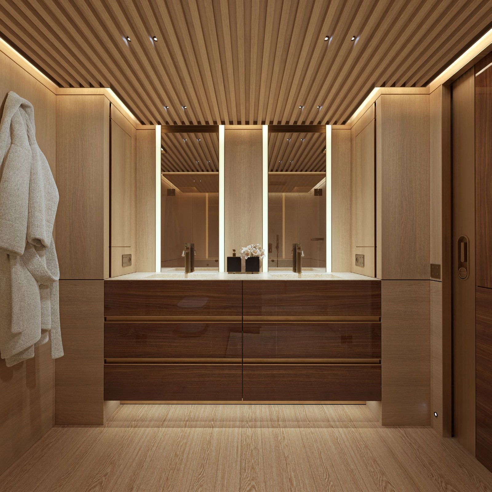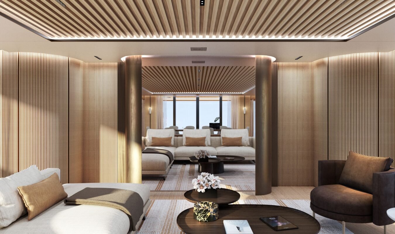 Operational excellence is at the core of PANORAMA’s design. Accommodations for a full professional crew ensure premium service, with dedicated crew routes allowing for seamless movement and discrete guest service. The crew layout includes seven bathrooms and optimally placed quarters, supporting efficiency and maintaining the yacht’s elegant guest-focused atmosphere.