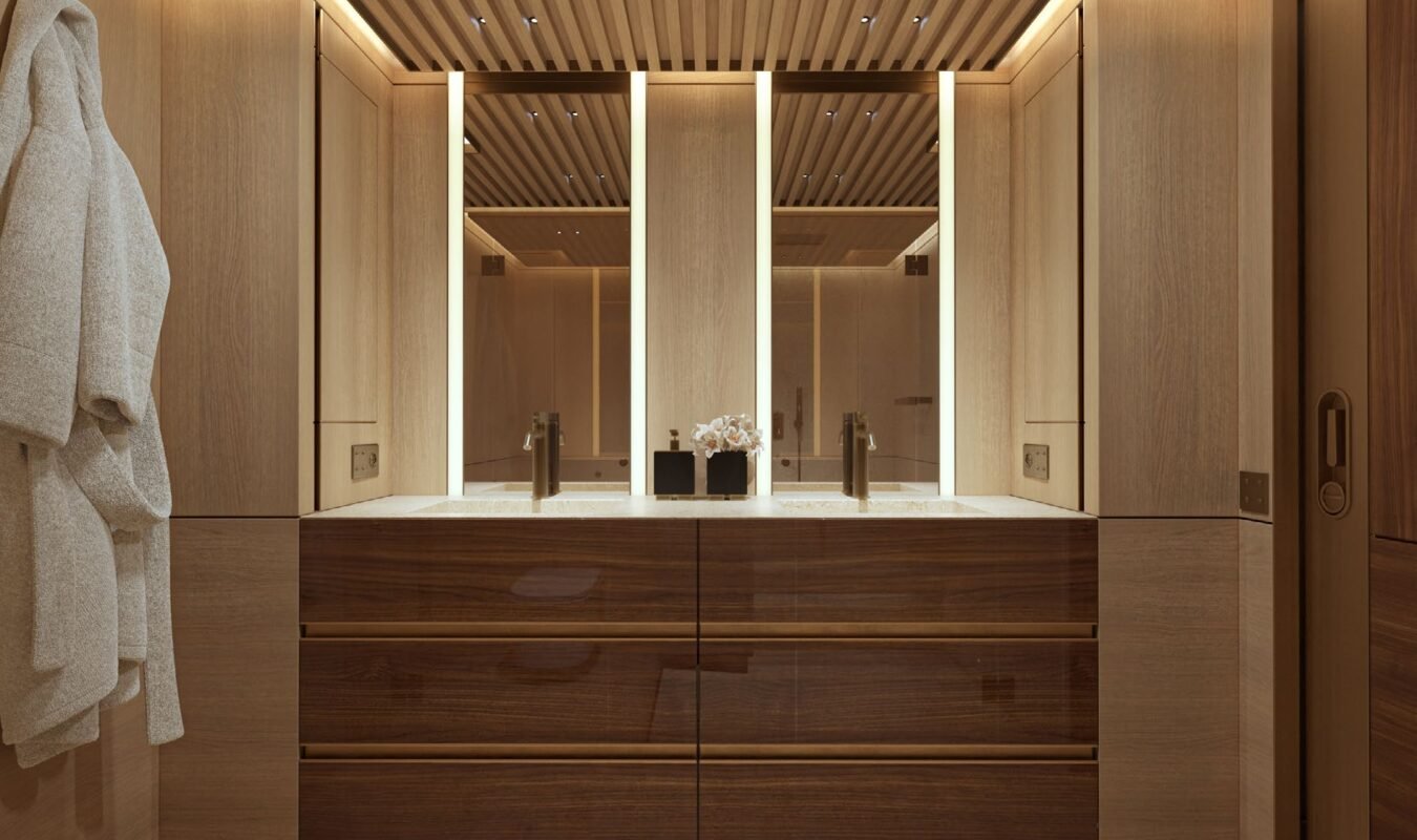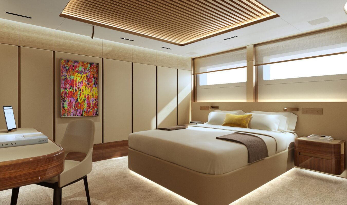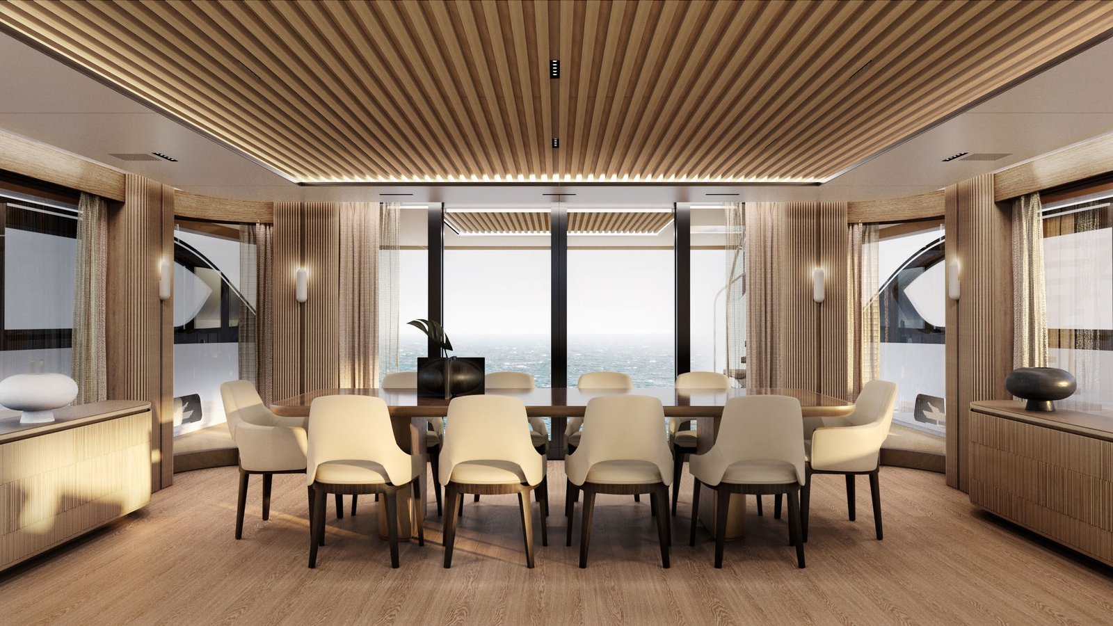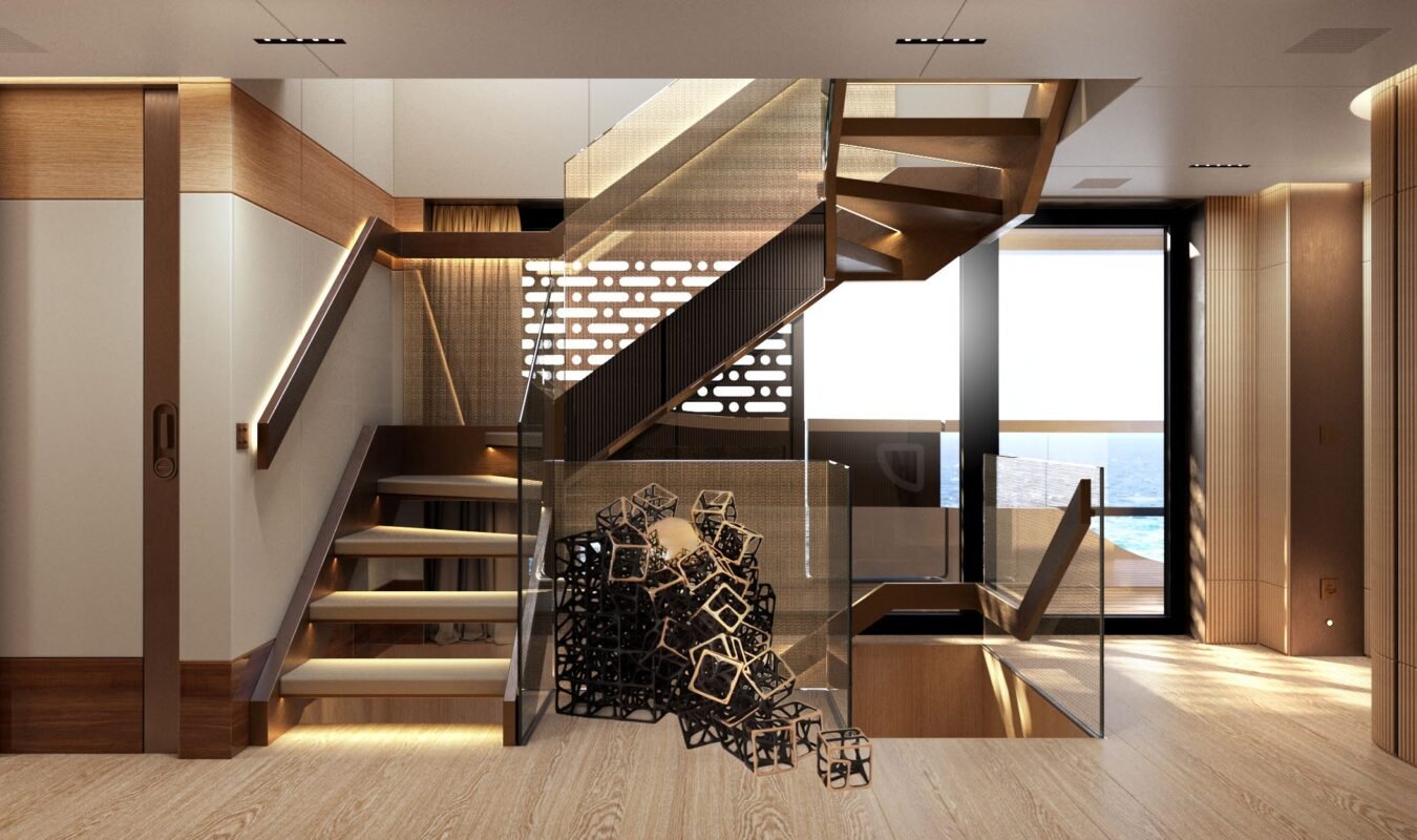 Operational excellence is at the core of PANORAMA’s design. Accommodations for a full professional crew ensure premium service, with dedicated crew routes allowing for seamless movement and discrete guest service. The crew layout includes seven bathrooms and optimally placed quarters, supporting efficiency and maintaining the yacht’s elegant guest-focused atmosphere.