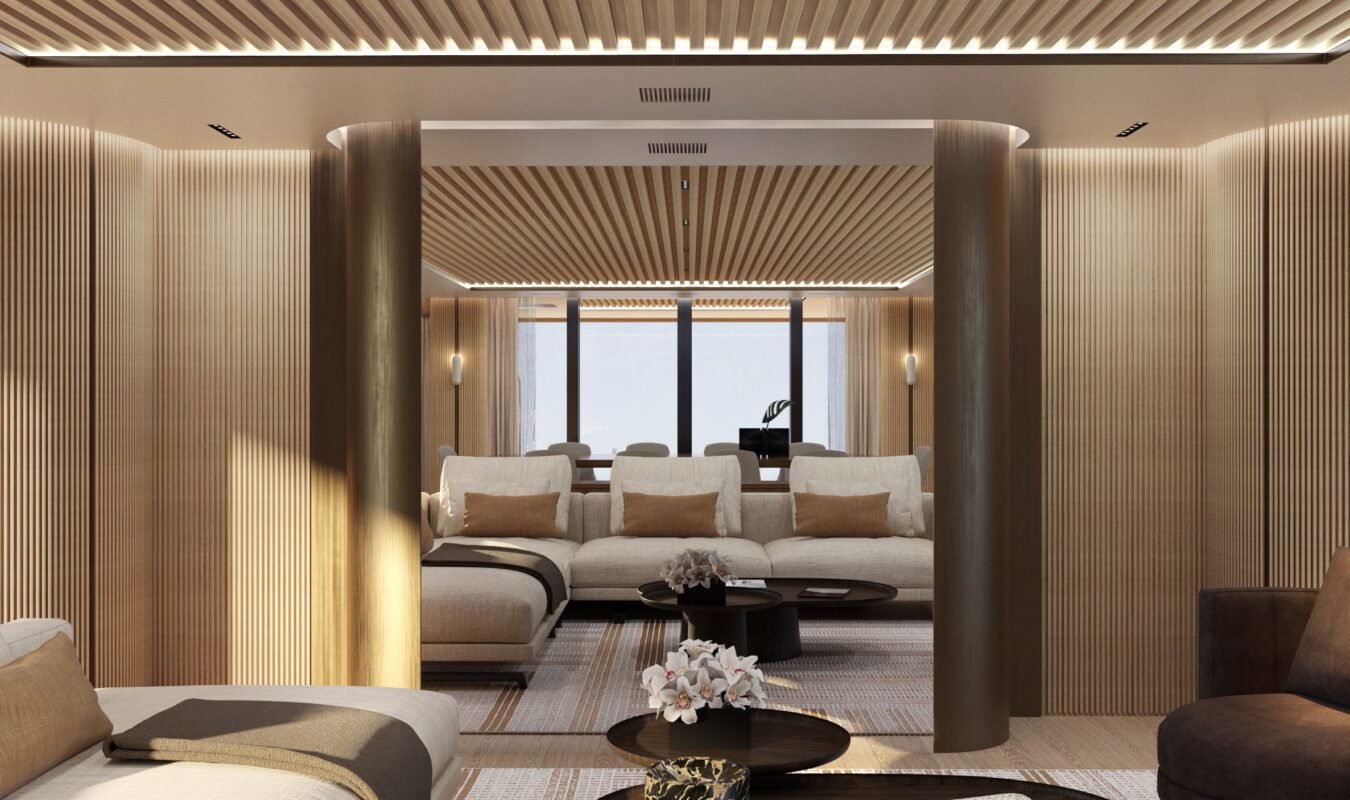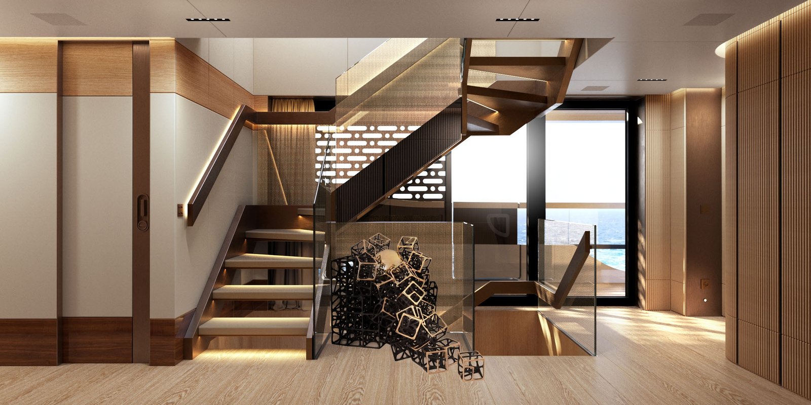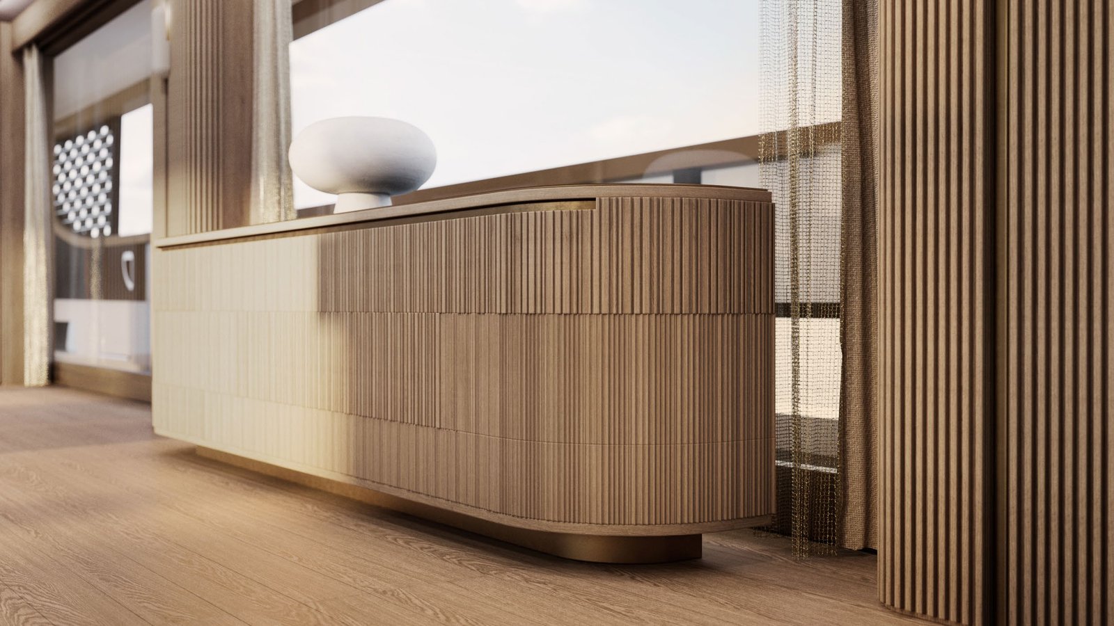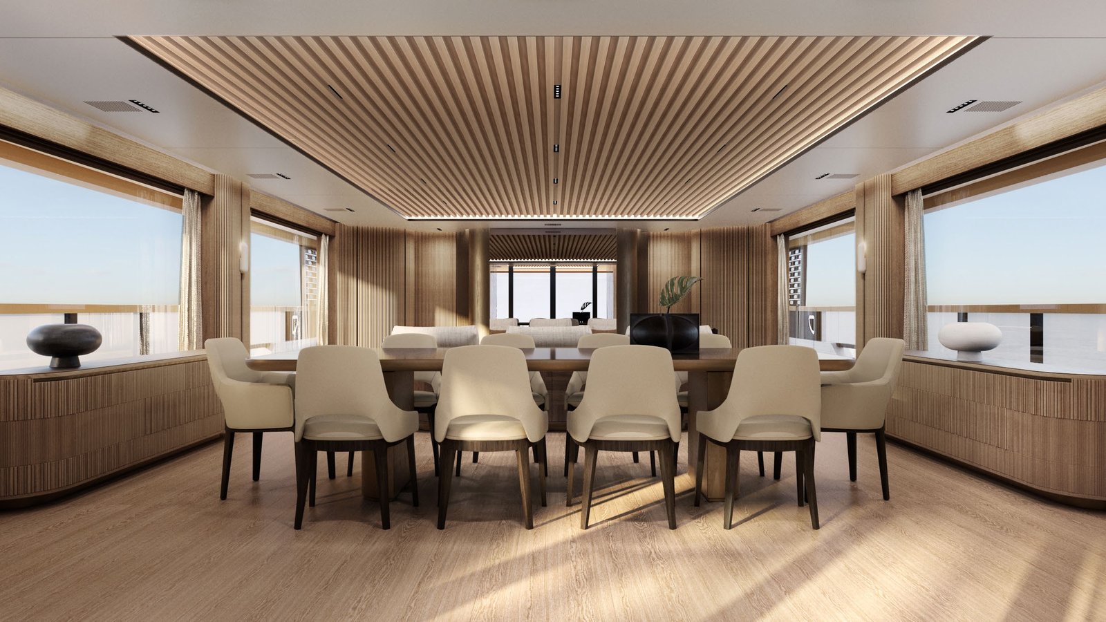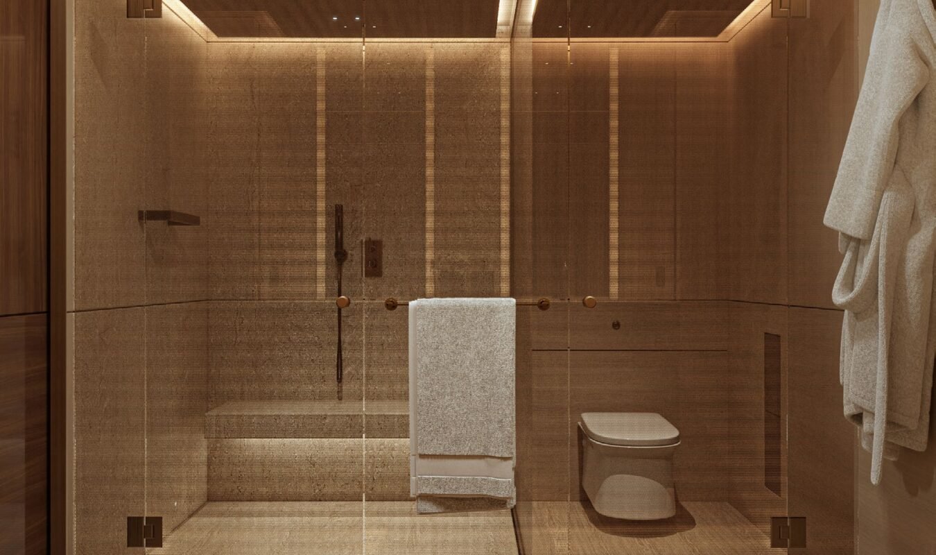 Operational excellence is at the core of PANORAMA’s design. Accommodations for a full professional crew ensure premium service, with dedicated crew routes allowing for seamless movement and discrete guest service. The crew layout includes seven bathrooms and optimally placed quarters, supporting efficiency and maintaining the yacht’s elegant guest-focused atmosphere.