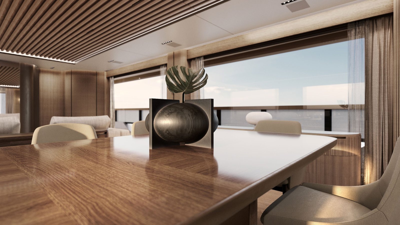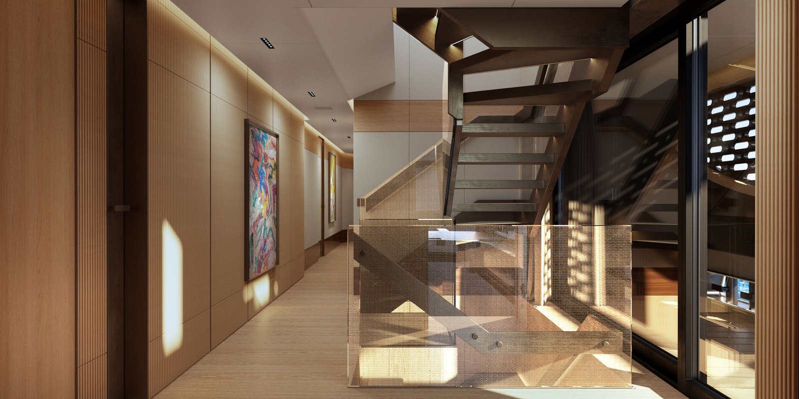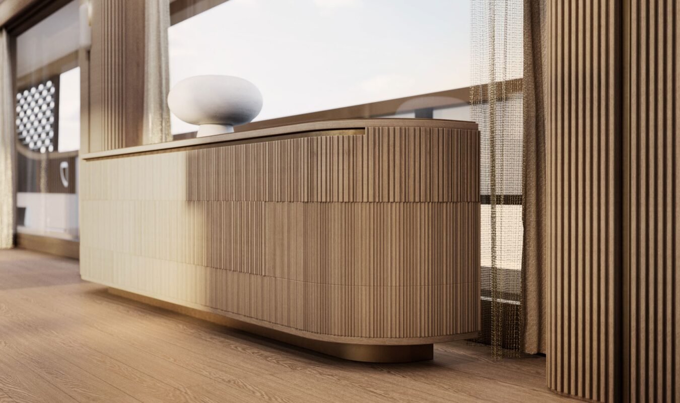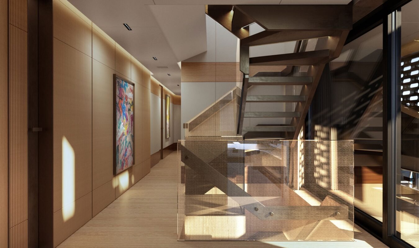 Operational excellence is at the core of PANORAMA’s design. Accommodations for a full professional crew ensure premium service, with dedicated crew routes allowing for seamless movement and discrete guest service. The crew layout includes seven bathrooms and optimally placed quarters, supporting efficiency and maintaining the yacht’s elegant guest-focused atmosphere.