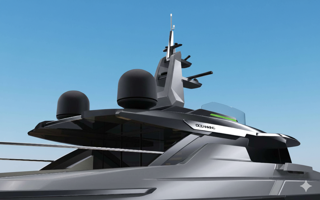 The 49.85‑metre OCEAN KING DOGE 500 expedition yacht is a bold expression of Italian design and seafaring innovation. With a full-displacement steel hull and striking profile, the DOGE 500 achieves perfect balance between power, comfort, and aesthetics. Designed for transoceanic range and ice-class cruising, she offers remarkable autonomy while delivering luxurious spaces tailored to exploration. Her sculpted silhouette, large interior volumes, and seamless indoor-outdoor flow redefine what’s possible in an explorer yacht. Every line of the DOGE 500 speaks to her mission: to go further, stay longer, and do so in absolute style.