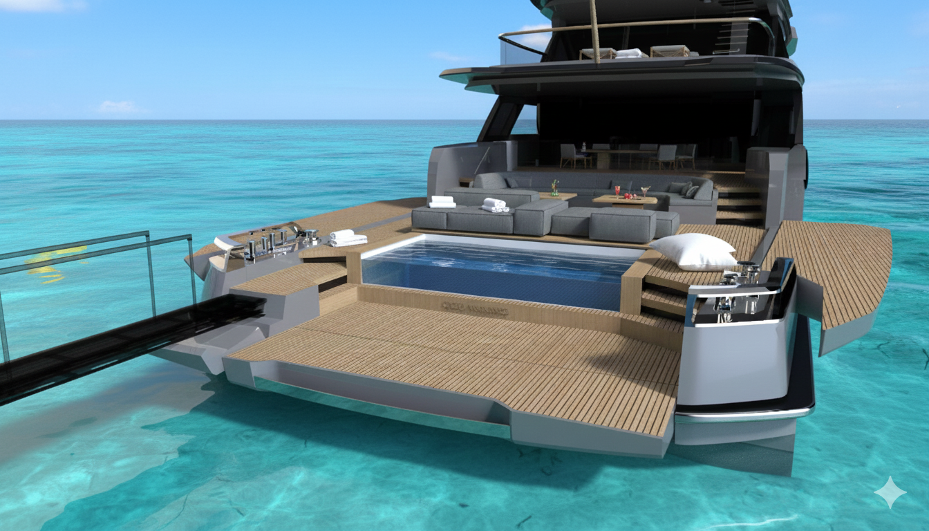 The OCEAN KING DOGE 500 is a 49.9-meter full-displacement explorer yacht built for long-range adventures with uncompromising luxury. Engineered with a robust steel hull and aluminum superstructure, she combines military-grade seaworthiness with refined Italian design. Her 8,000 nm range, twin CAT engines, and ice-classed hull make her ideal for global cruising — from Arctic expeditions to tropical escapes. Featuring an impressive 499 GT volume, fold-out terraces, beach club, wellness area, and a private pool deck, she offers the comfort of a much larger yacht. Custom interiors, panoramic views, and advanced stabilization systems ensure total serenity on board. The DOGE 500 redefines what a luxury explorer yacht can be — powerful, elegant, and built to roam anywhere.