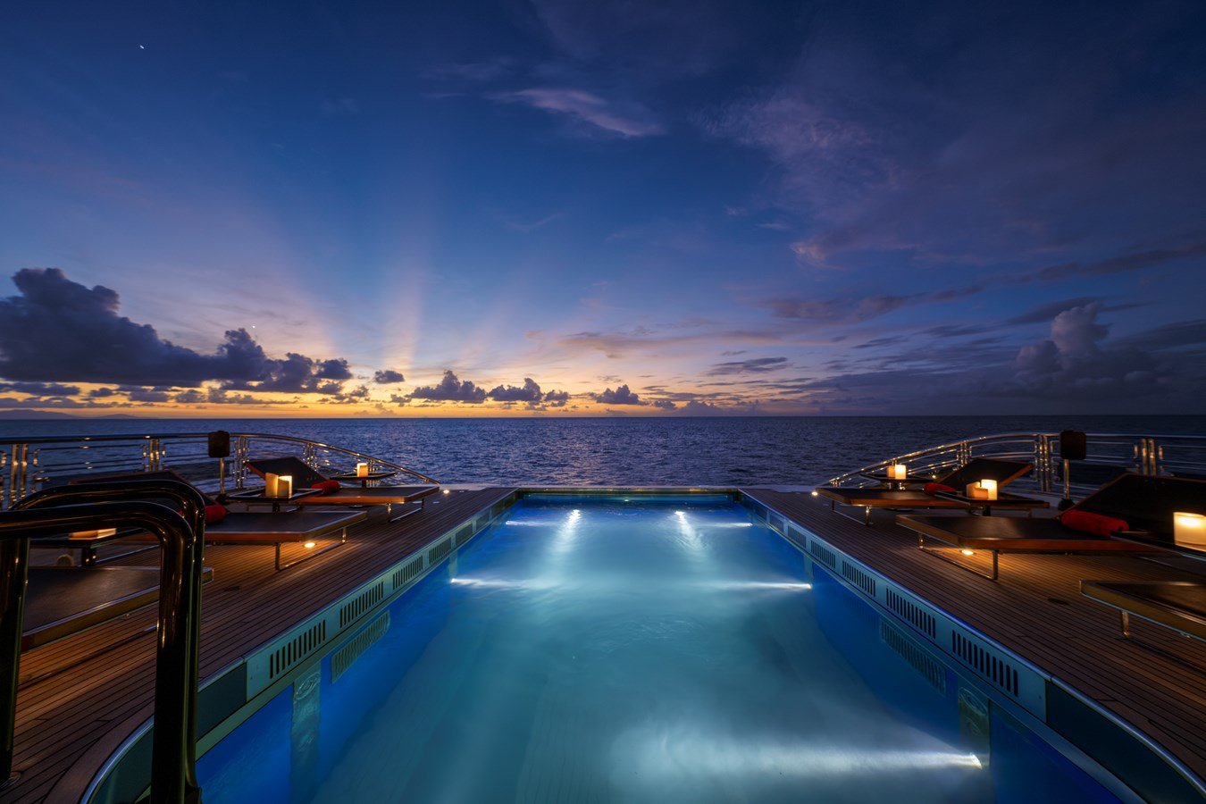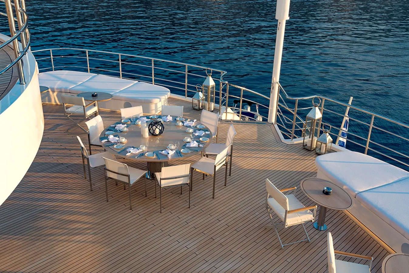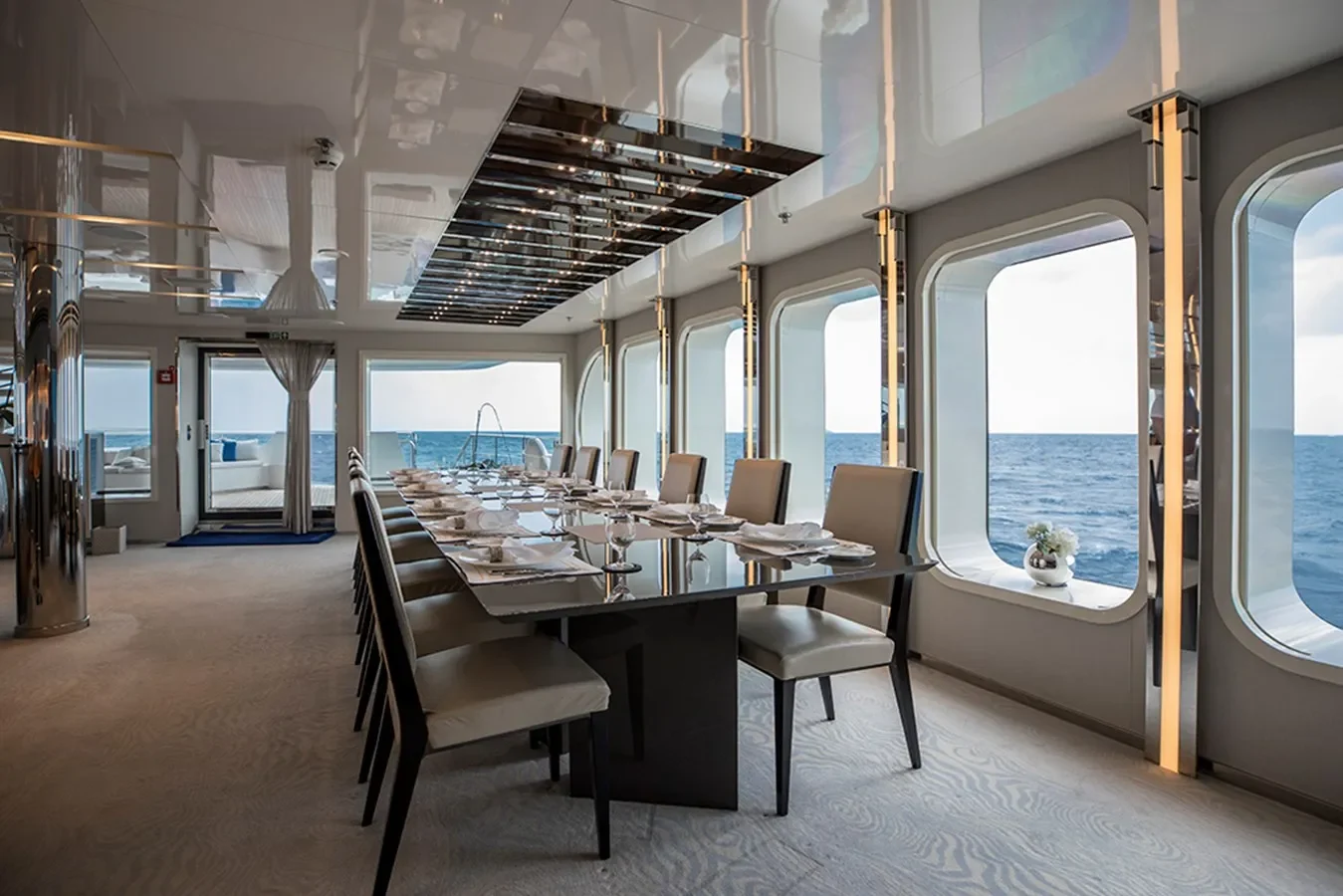 Onboard Alfa Nero, guests are welcomed into an environment of unparalleled sophistication. Designed by Alberto Pinto, her interior balances timeless elegance with modern luxury. The yacht accommodates 12 guests across six spacious staterooms, including a full-beam master suite with private terrace. Expansive salons, alfresco dining areas, and her iconic infinity pool—capable of transforming into a helipad—redefine outdoor living. Every detail is crafted for comfort, making Alfa Nero the perfect choice for both lavish entertaining and private retreats.