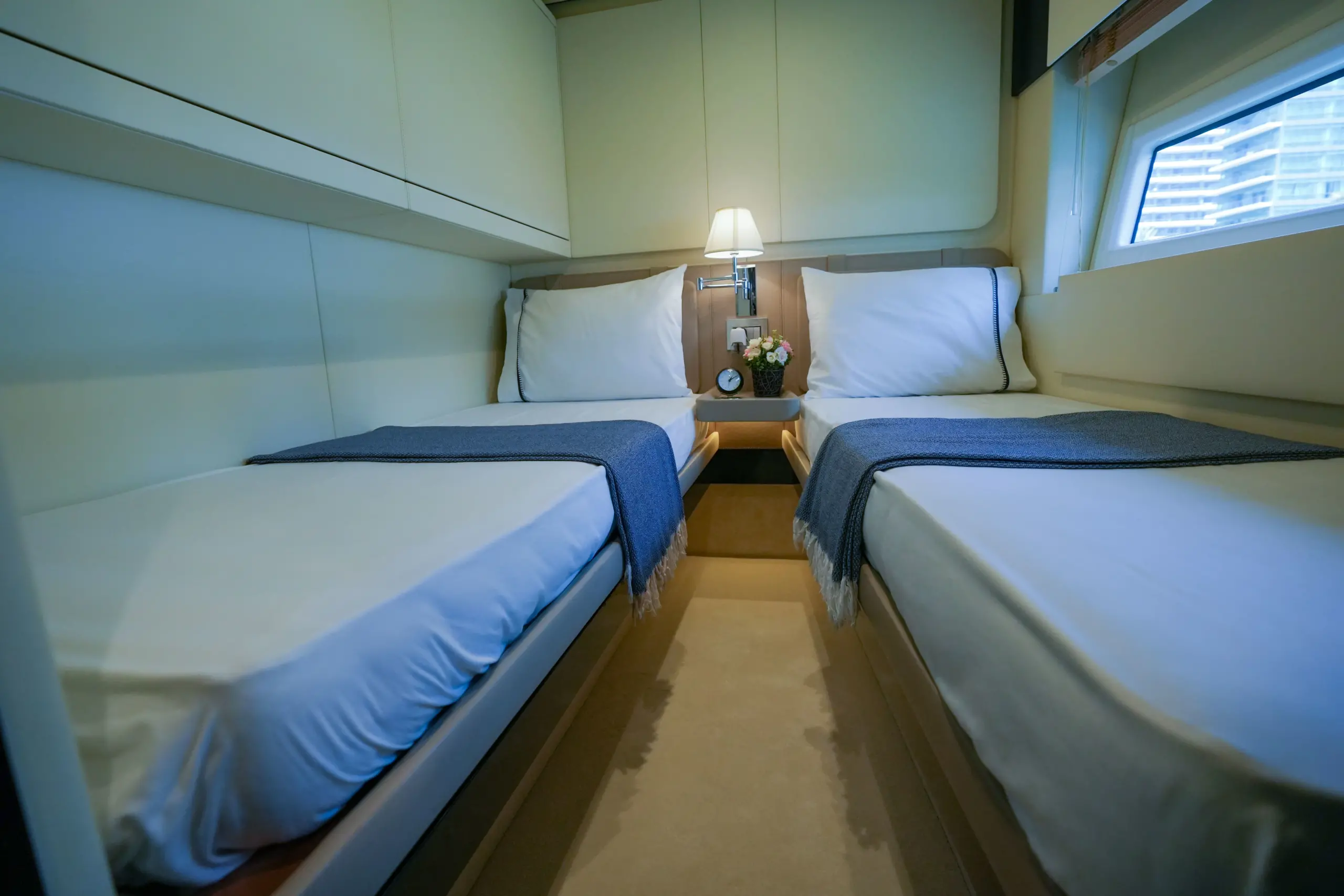 With expansive sun decks, sophisticated interiors, and panoramic sea views, the 77S is perfect for intimate gatherings, corporate retreats, or lively celebrations. The yacht’s modern amenities and stylish design create an atmosphere of effortless indulgence for all guests on board.