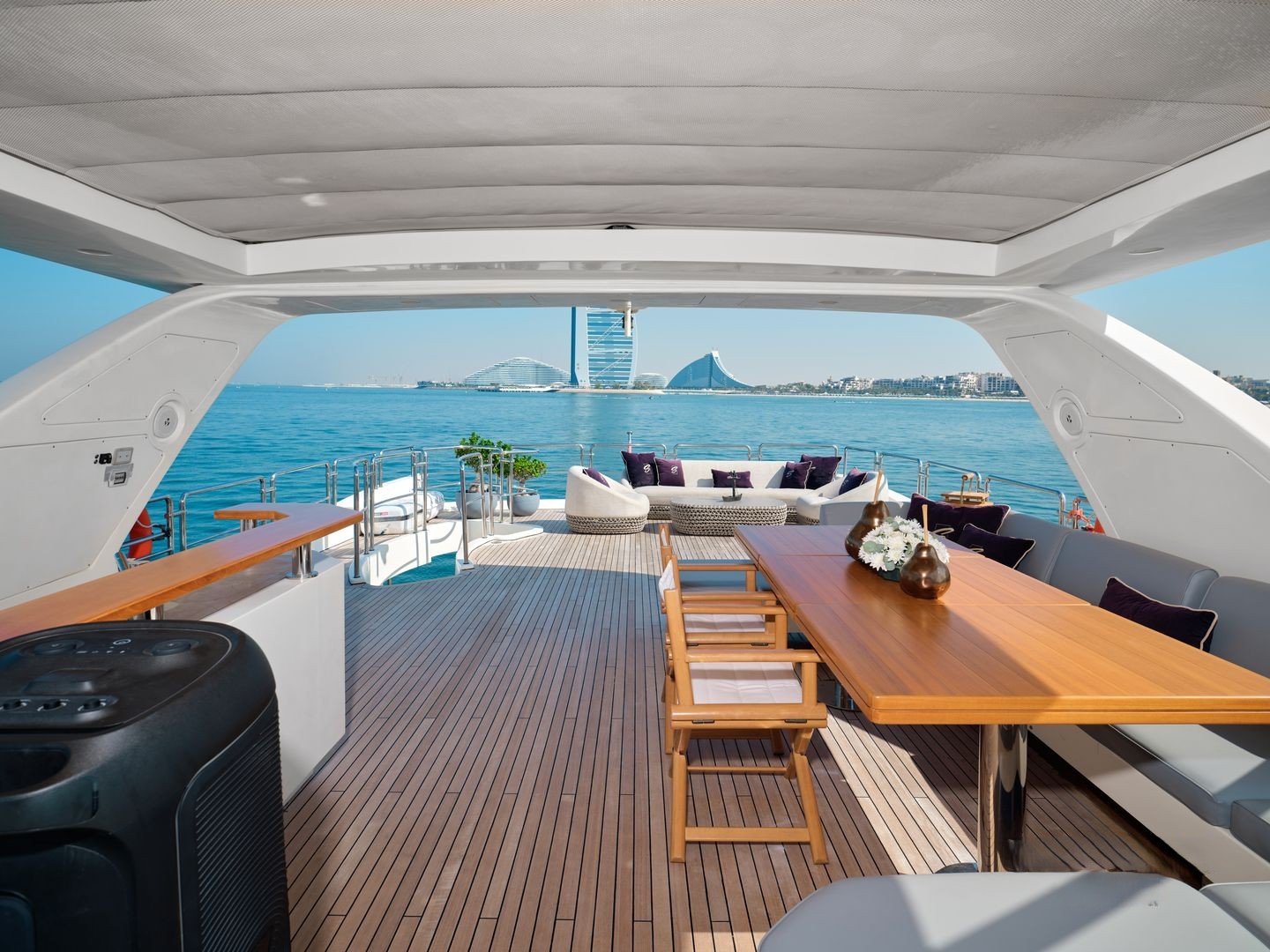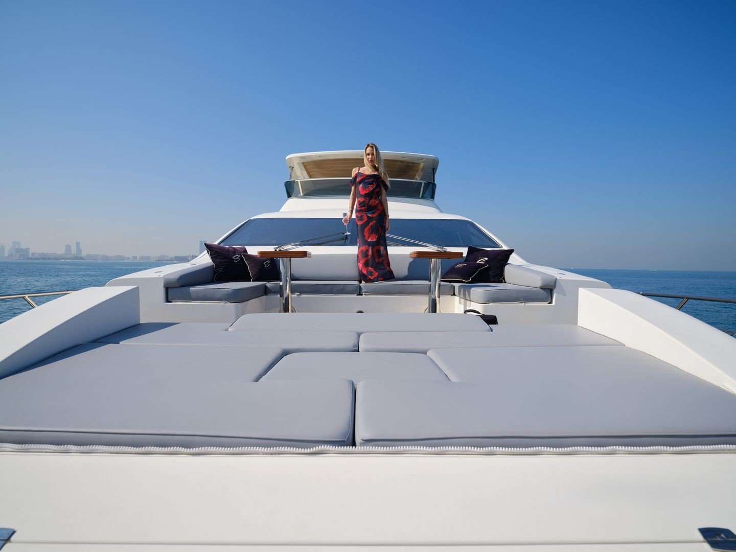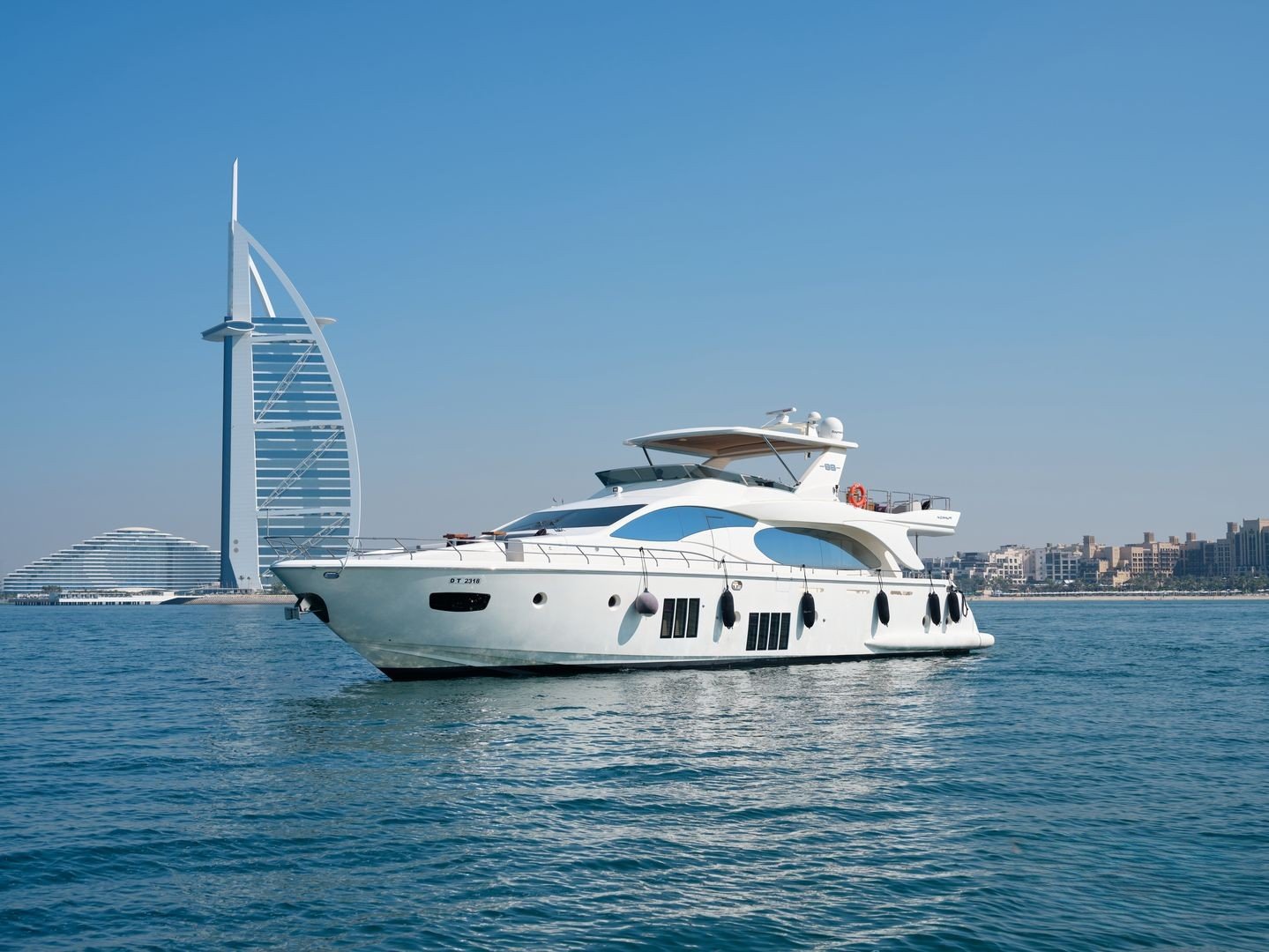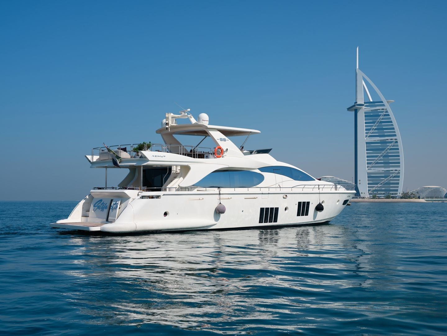 Whether cruising around Palm Jumeirah or admiring the Burj Al Arab from the sea, every moment aboard the Azimut 88 promises exclusivity, elegance, and pure indulgence.