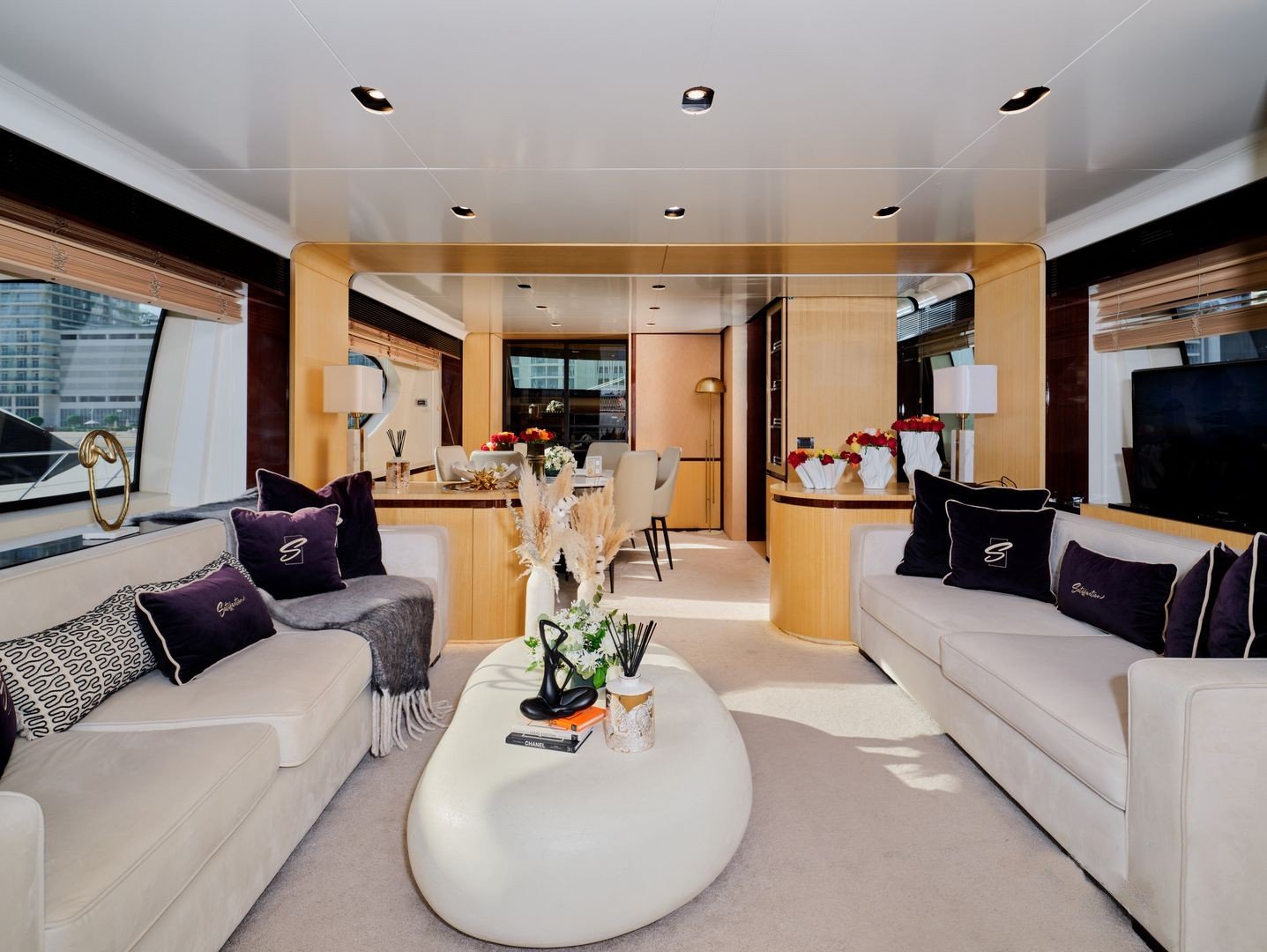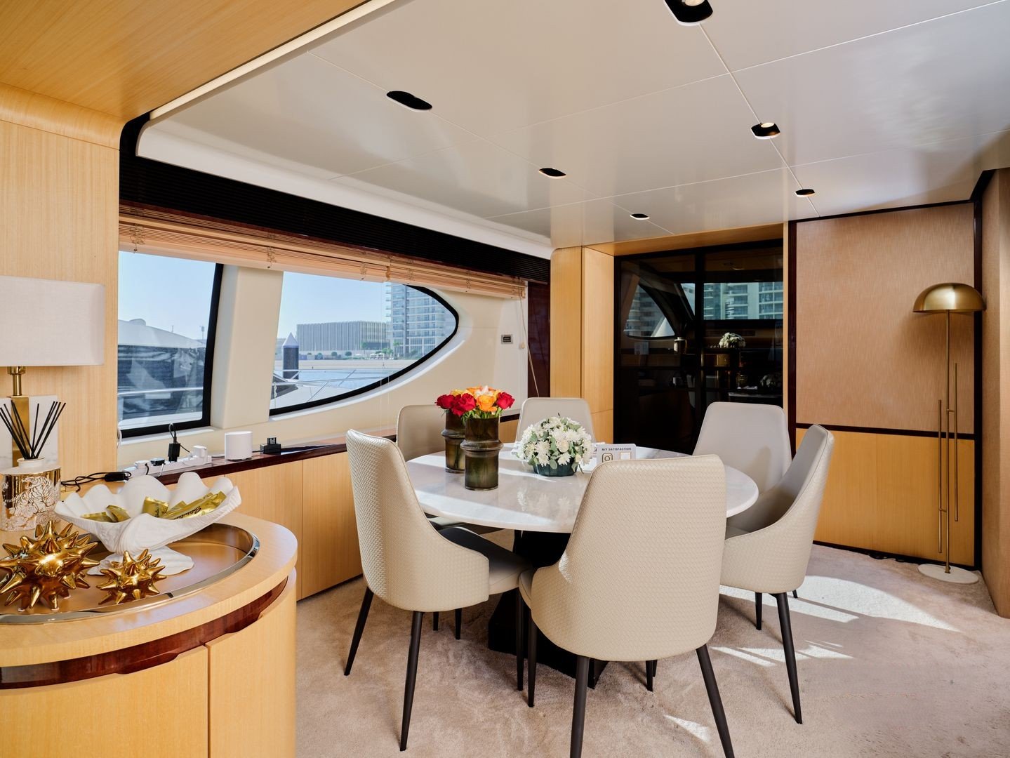 • Elegant salon with panoramic windows and designer furnishings