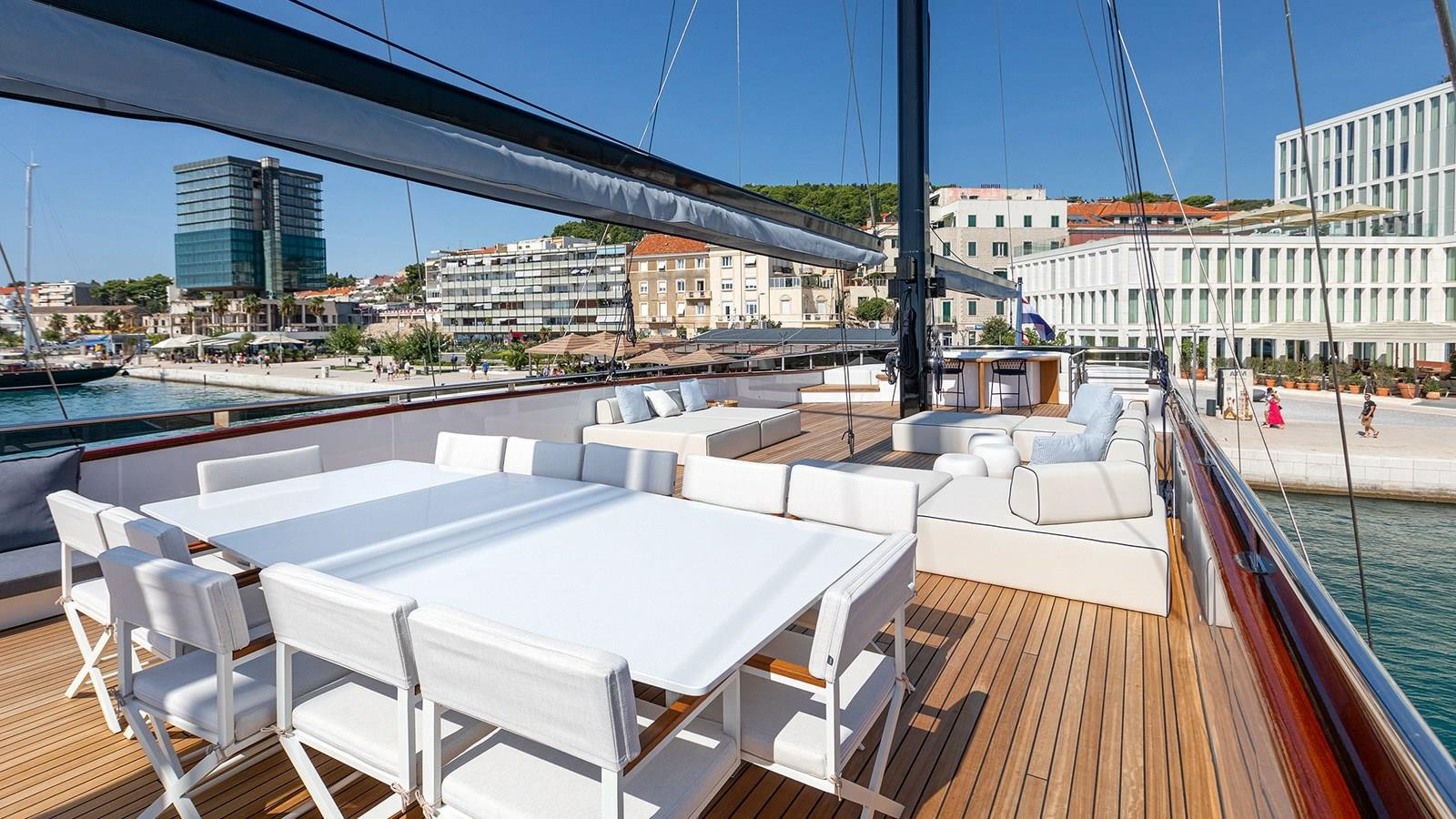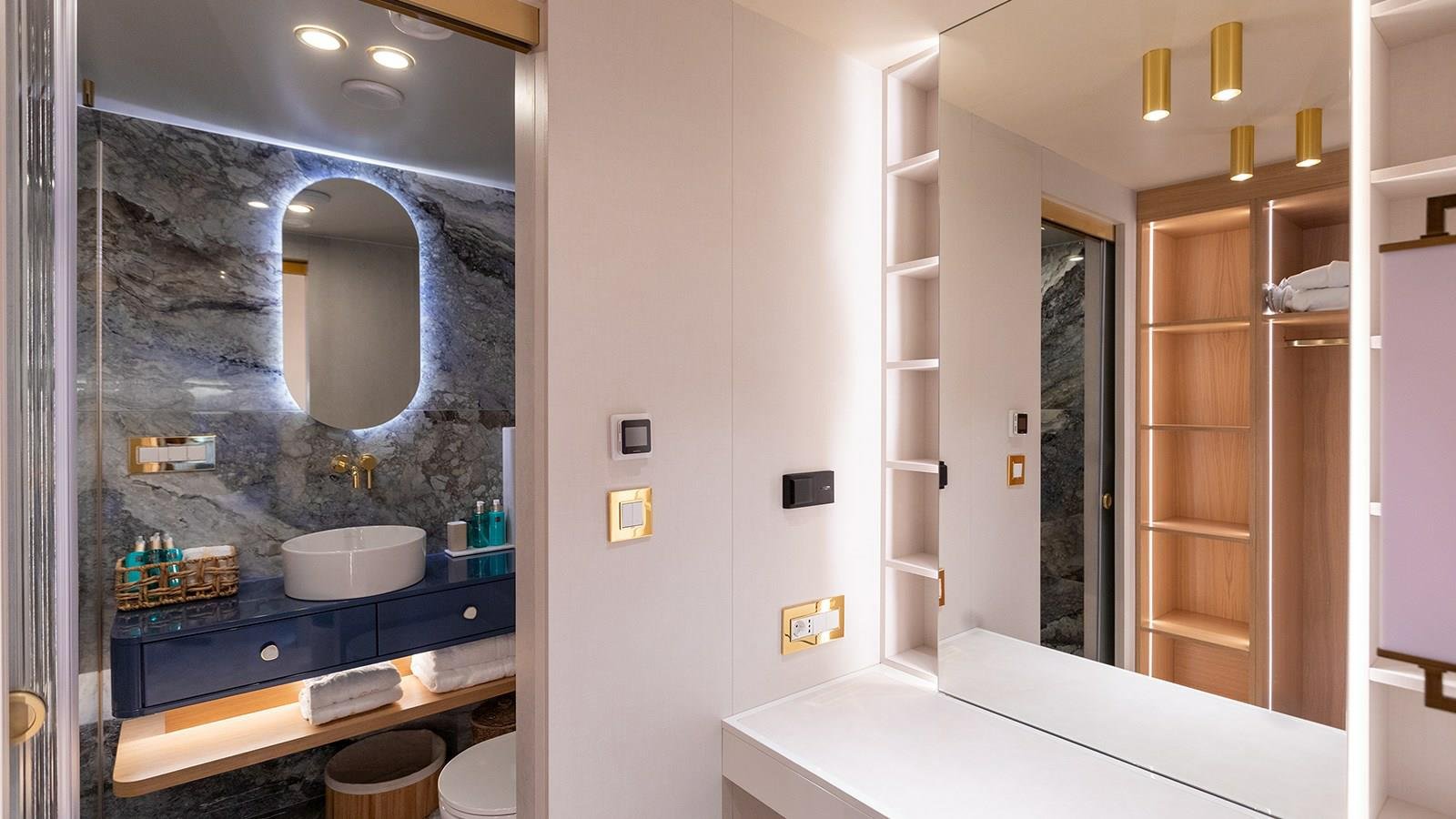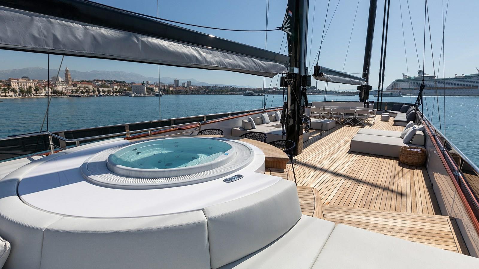With a generous beam of 8.6 meters, Scorpios offers expansive exterior decks that cater to every mood and moment. Guests can sunbathe on plush loungers, gather around al fresco dining tables, or enjoy quiet moments in shaded lounges with panoramic views. Whether it’s a sunrise breakfast or a sunset cocktail party, the deck spaces have been meticulously crafted to elevate the yachting lifestyle with a sense of openness, serenity, and sheer luxury.